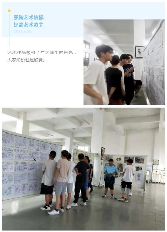 为树立榜样,展示学生技能成果,进一步引领和激励师生以更加饱满的热情办实事、开新局;同时展现我校丰富多彩的校园文化和师生高雅健康的艺术才情、积极向上的精神面貌,2021年6月30日下午,我校举办了2021年春季学期期末优秀作品展示活动。